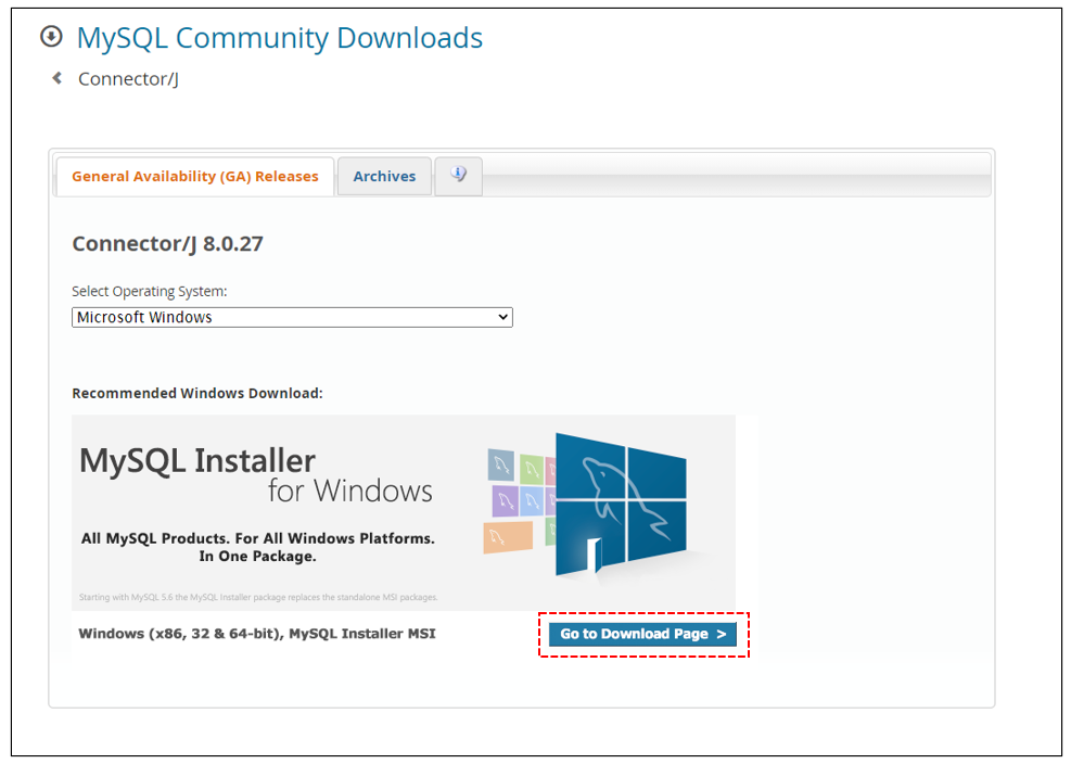 MySQL Connectors → Connector/J → Connector/J 8.0 선택