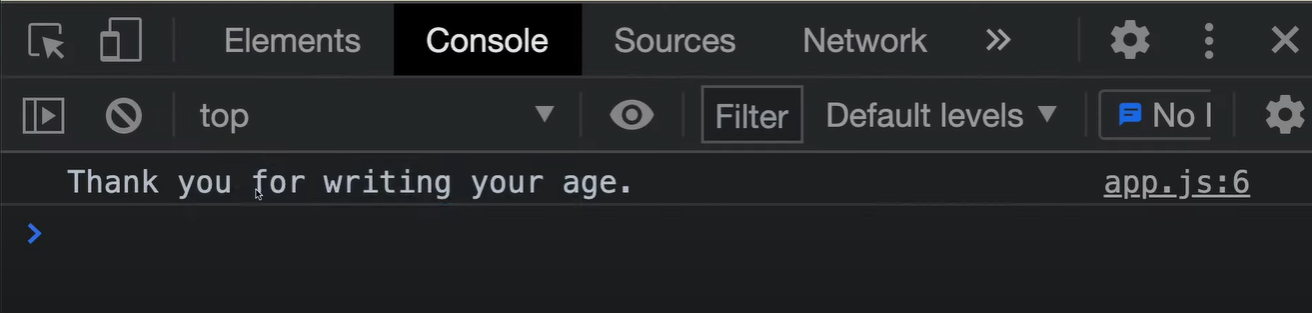 console.log("Thank you for writing your age.");