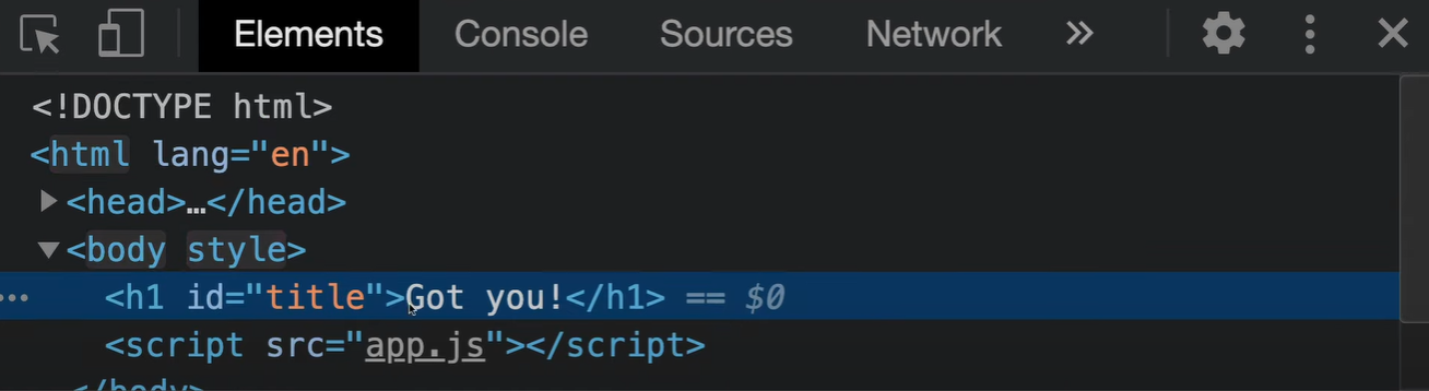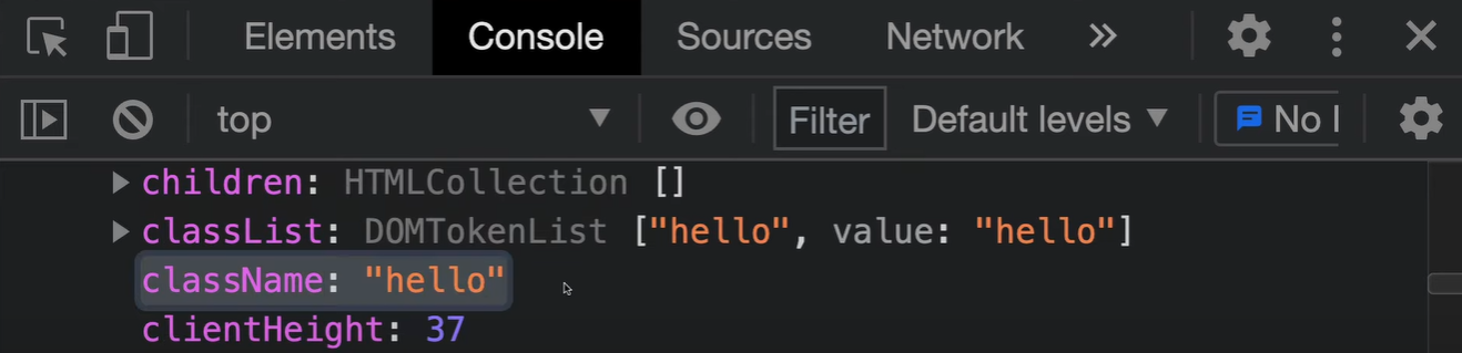 javascirpt에서 h1의 className 및 id를 확인할 수도 있음.