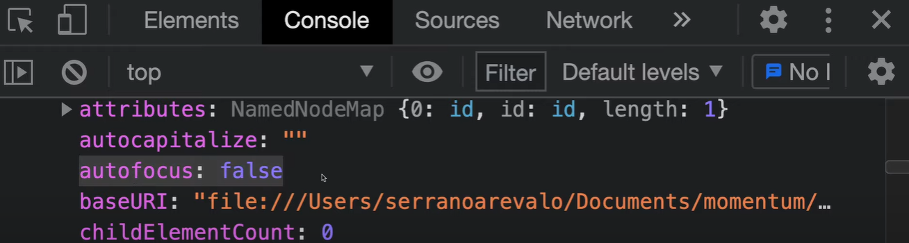 autofocus가 true로 바뀐 것을 확인할 수 있음.