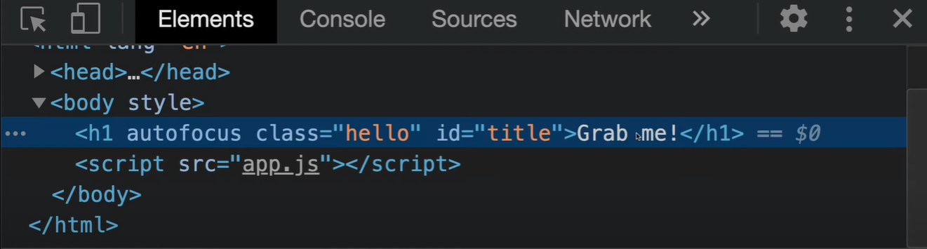 <h1 class="helllllo!!!!" id="title">Grab me!</h1>