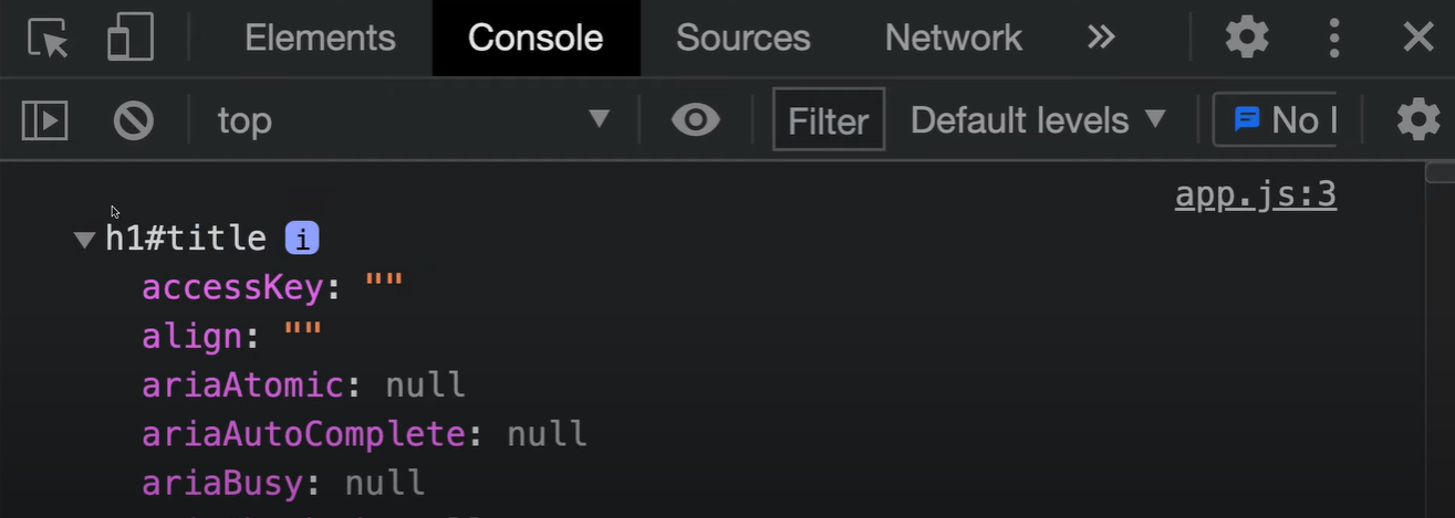 id값이 title인 <h1> 태그 하나에서 가져올 수 있는 많은 것들을 볼 수 있음.