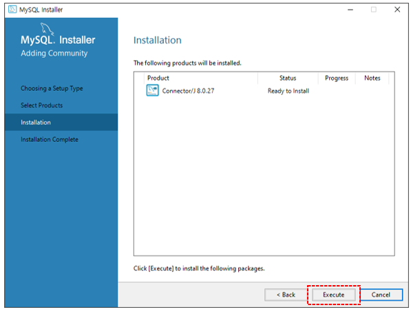 다운로드 된 mysql-installer-community-8.0.27.0.msi 파일 설치
