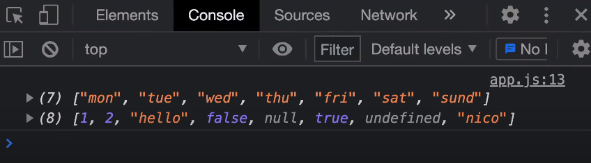 const nonsense = [1, 2, "hello", false, null, true, undefined, "nico"];