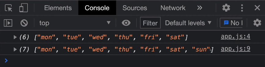 console.log(daysOfWeek);